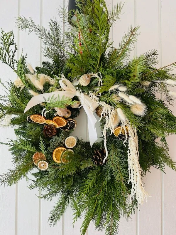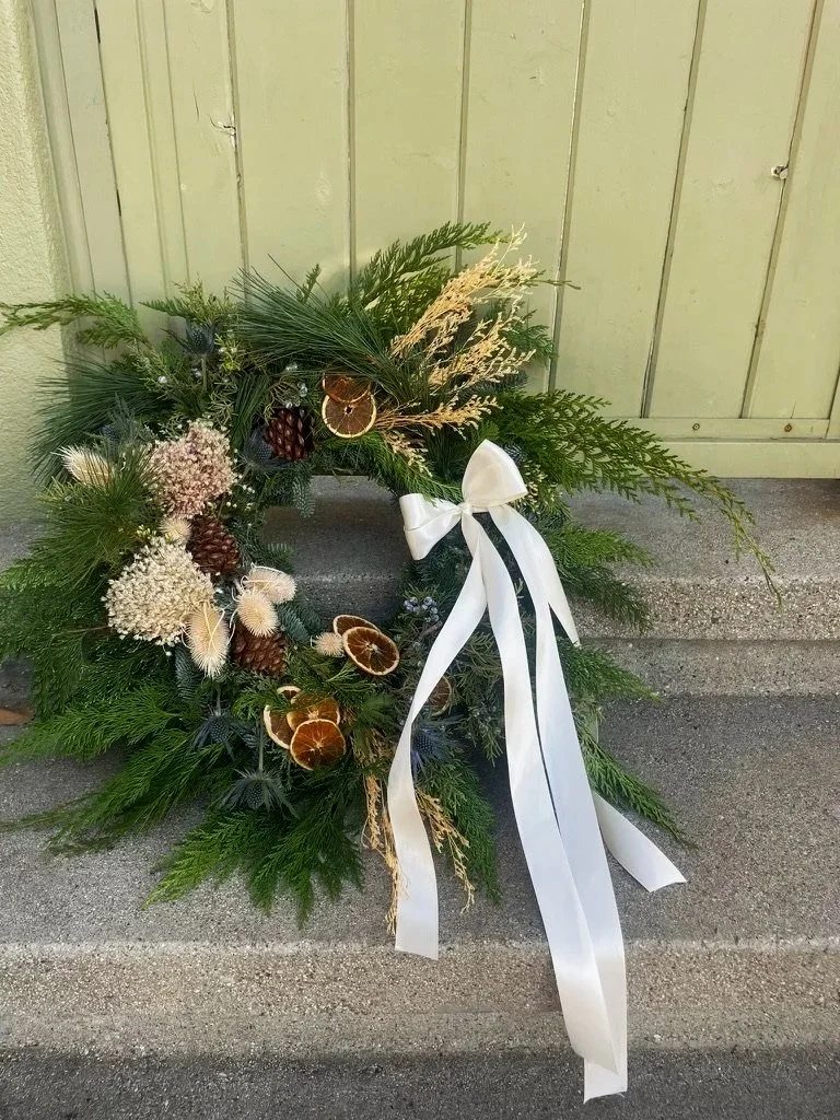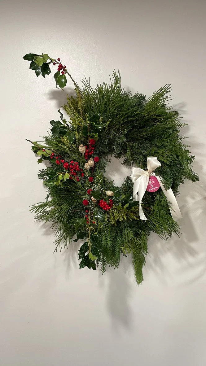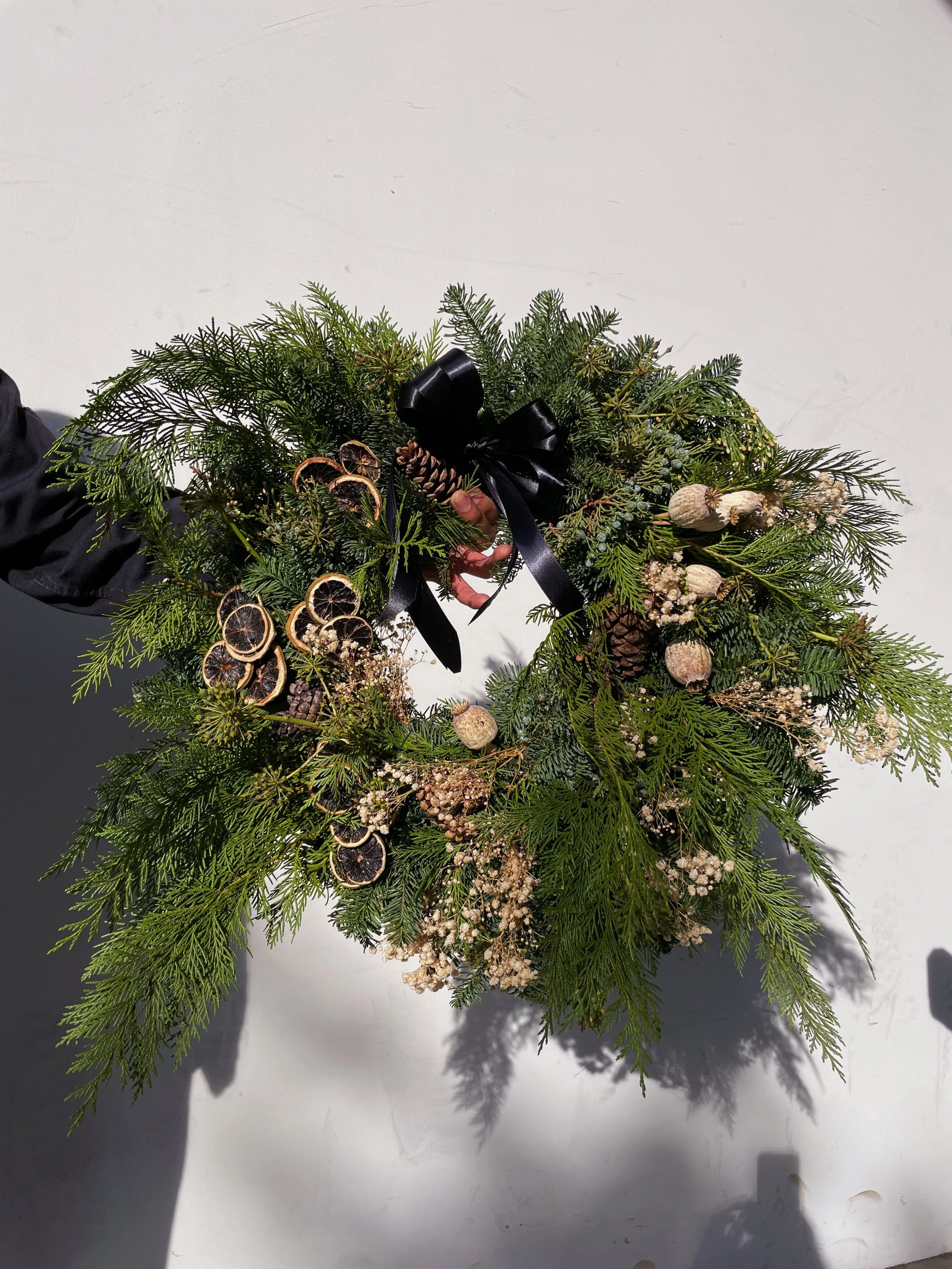 fa la la la la 〰️ fa la la la la 〰️ fa la la la la 〰️ BUDS HOLIDAY WREATHSfresh wreaths span roughly 22-26” in diameter and are made using fresh pine, juniper, and cedar greens + holiday decor. $108 (tax incl.)